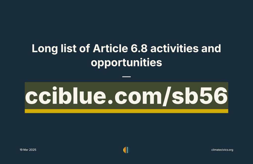 And, we shared the Long List of Non-Market Approaches outlined by national negotiators and other stakeholders for the SB56 round of UN Climate Change negotiations, in 2022.